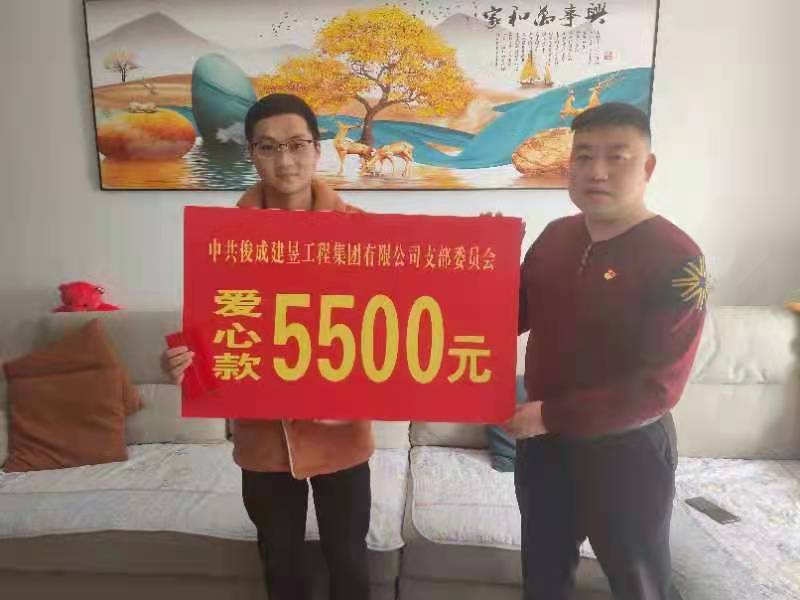2022年3月12日上午,中共俊成建昱工程集團有限公司黨支部書記李發(fā)建帶領(lǐng)全體黨員、入黨培養(yǎng)考察對象及入黨積極分子一同看望慰問了公司患病職工朱偉,并代表黨支部送上愛心款。